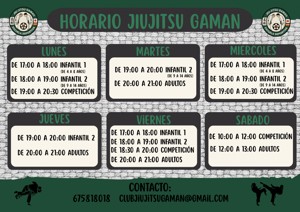 Consulta todos los horarios de nuestro club de Jiu Jitsu en Calatayud: